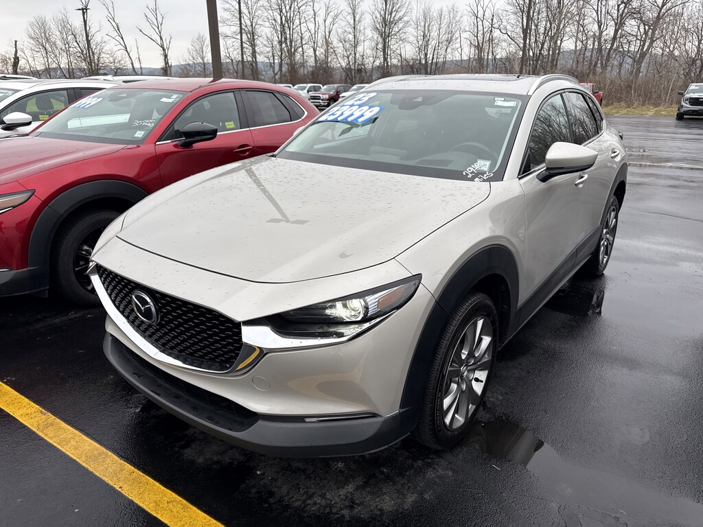 Scores 33 Highway MPG and 26 City MPG! This Mazda CX-30 delivers a Regular Unleaded I-4 2.5 L/152 engine powering this Automatic transmission. WHEEL LOCKS, STAINLESS STEEL REAR BUMPER GUARD, PLATINUM QUARTZ METALLIC.